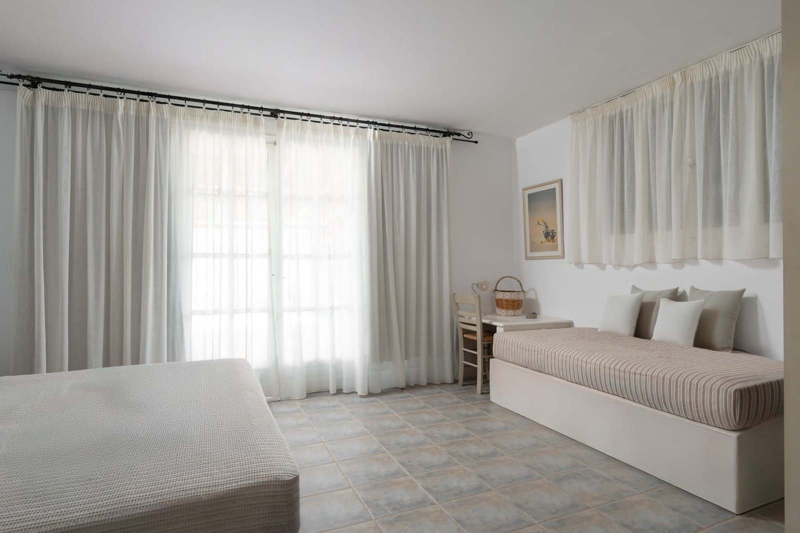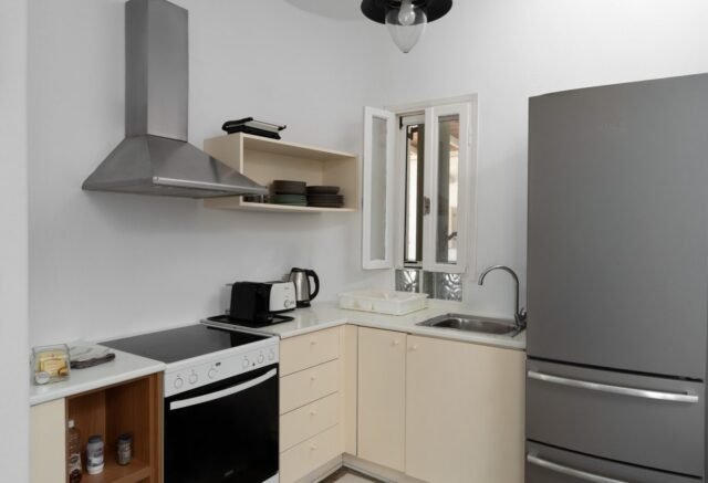 The top level has a living/dining room and a well equipped full-size kitchen. It boasts verandas with open view to the sea and the garden. All bedrooms are air-conditioned.